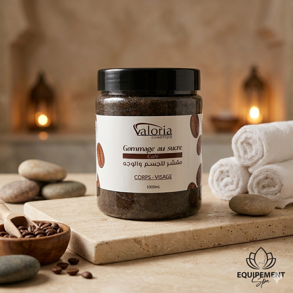 Gommage au sucre café pour corps et visage – usage professionnel spa et hammam au Maroc