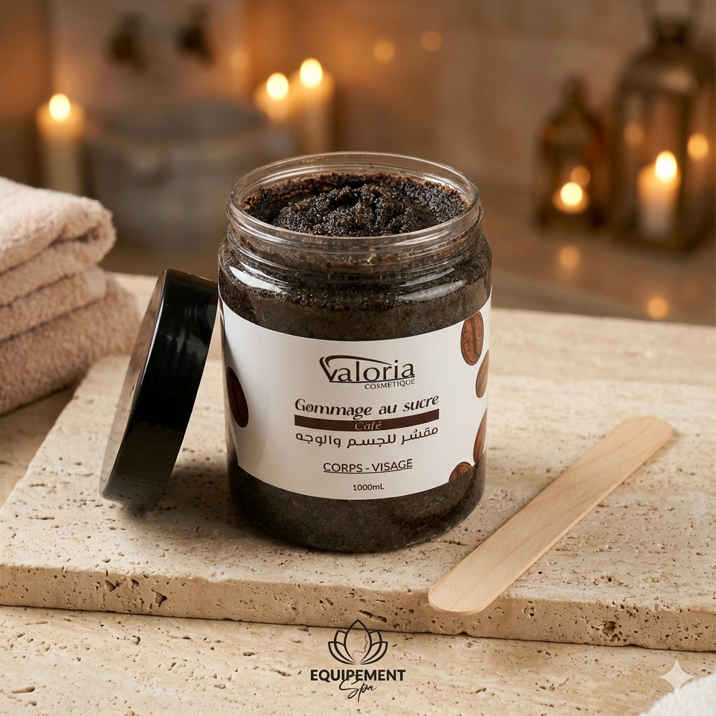 La texture sucrée assure une application maîtrisée et un rinçage simple, compatible avec les protocoles de soin pratiqués dans les établissements de bien-être au Maroc. Le produit est utilisé avant un massage, un enveloppement corporel ou l’application d’un masque.